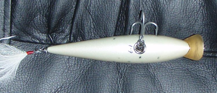 This is for Prof M. 6 3/4 " long and about an ounce. Foiled, hancarved sandeel swimmer. Prof, I am coming up to plugfest if you want me to hand it off, if not I'll throw it in the mail.