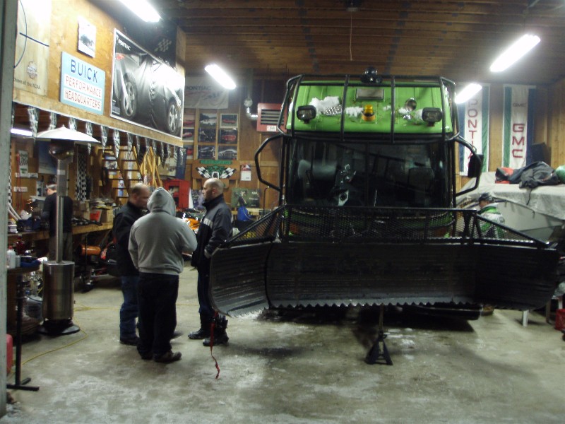 A pic of Ty in the groomer "old greenie". Conner fast asleep after little ride. I had to hold him for ten miles so he wouldnt fall off. A shot of another groomer being maintained.
