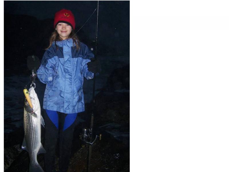 Sweet, reminds me of my Daughte.She landed her ist one from the surf on a lead head I made when she was 7. She'll be outfishing you soon.
