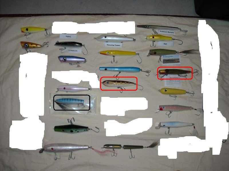 I would like to buy the one in the second row,six down,looks like a blue mackerel popper.Also third row,fifth down looks like a brown trout.I would rather pay with a $30 USPS Money Order if that is good with you.