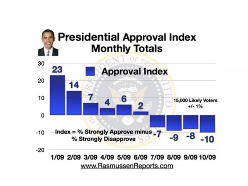 Evidently Obama's 3 campaign visits to NJ for Corzine, in a solid Democratic state, did nothing to change his approval rating.