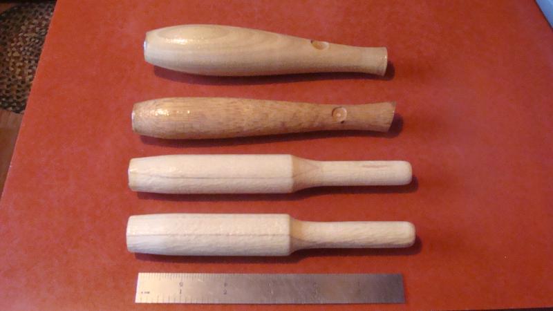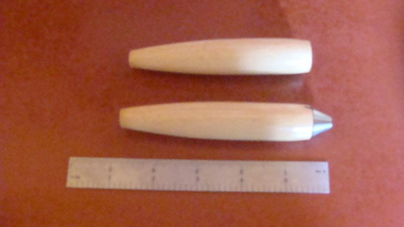 our, just trying to give credit to a few canal gentlemen who have taken me under their wing with some advice. the one pictured is made from 1 1/8" dia. natural color nylon. time to machine is aprox. a few minutes to form the shape. this is done with a pc. of hardened tool steel blade on a metal cutting lathe. the form tool is feed into the work pc. using the cross slide to a dial reading. when correct dia. is obtained the dial is set and the process is easy. have been trying some pvc (grey in color)