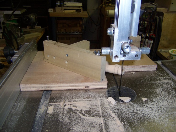 I saw Joe's fixture in person and it is a great fixture. I used some of his ideas in mine. I will end up using something similar for my next procedure. I just feel I will get more consistency in my first cut with the set up I am using now. I don't have the type of set up Joe has for his band saw so that is why I opted to go this route. I also find it not to be too messy as it is a very small cut and not much dust and it is pretty safe, at least for me, as the blade is only a small amount above the table. Of course you need to pay attention and accident's can happen to the best of us. I still may add an adjustable miter groove set up for futher saftey but for now I will use as is.