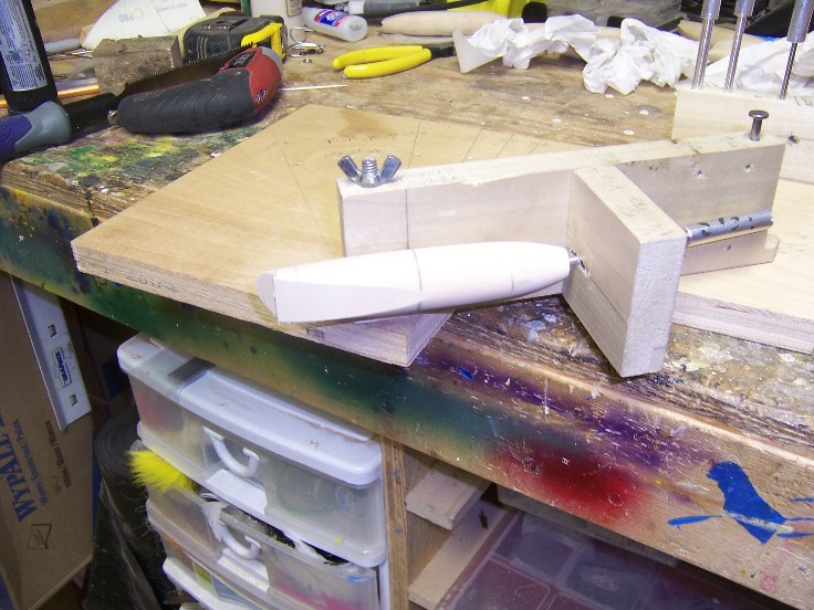 Alll holes are fefrenced off of the belly hole, the tail stock is movable to accomodate different sized plugs, the pin hold the plug tight, no clams are needed, which I found to be problematic with the original jig I made.... pre detirmined areas are marked on the blank prior to cutting, these referance the start of each new cut...