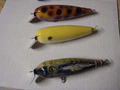 i figured after all the questions i asked here i may as well put up some pix. they ain't wallhangers, as you can see. i've been building for less than a year, and going to plug fest made me go from a kit to a lathe to a part-time obsesssion! i get a blast out of building and catching on them, its like nothing else in the sport. to all those here who have helped me on my way, a big THANKS!