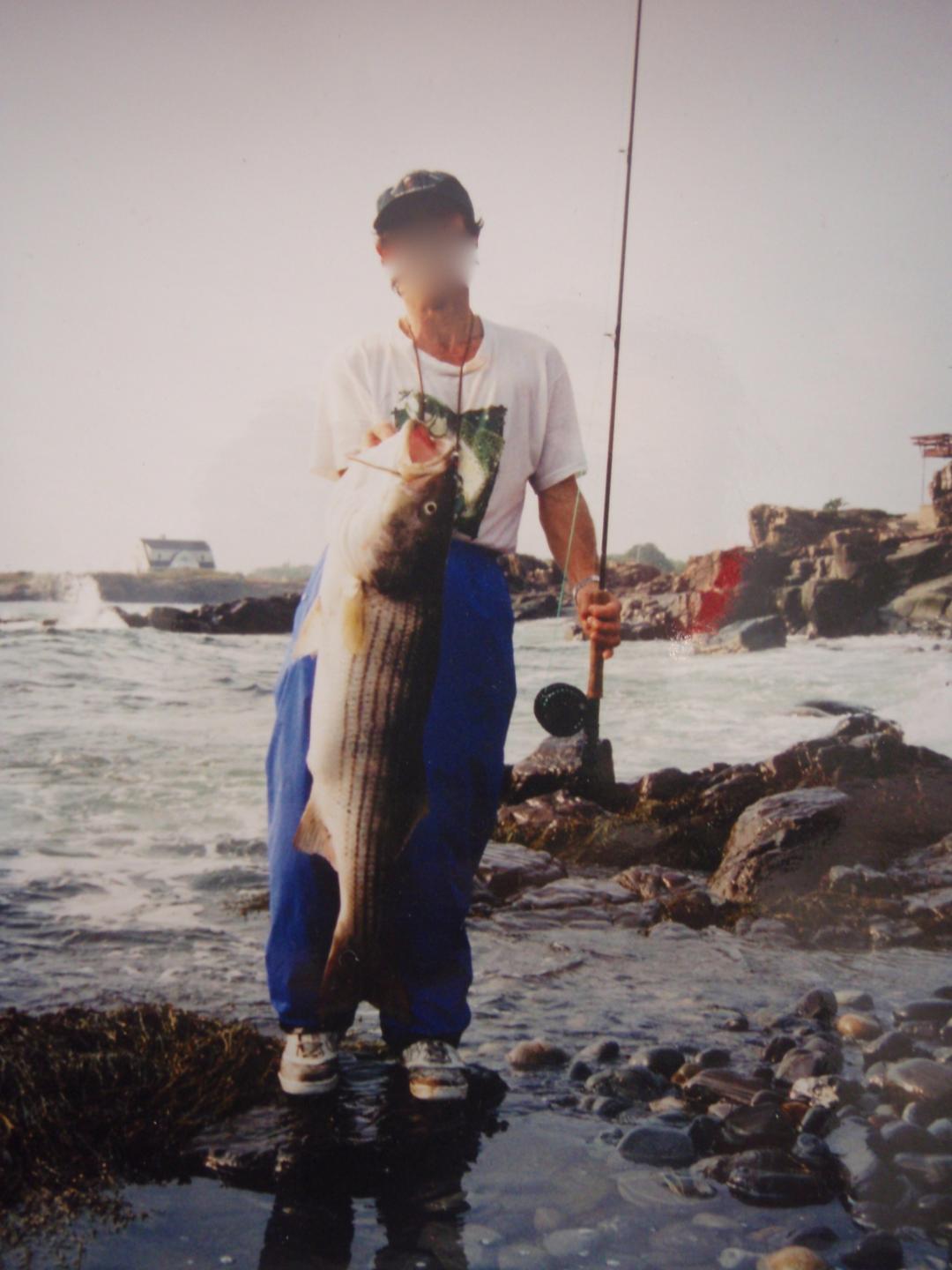 He also tags the bald eagles that live in scituate, RI. every year. DEM rows him out to the island, he climbs a huge pine tree loaded with poison ivy vines and sits INSIDE the nest while he tags. The eagles just fly around and don't bother him while he is doing this. He's an interesting guy with a great job. These are the only two pics I have of him. He waited 18 yrs for a moose tag and drew one this past fall (he already said he will never do it again). The other is a 40+ inch bass landed on an 8wght. fly rod from the surf in Maine. The third picture is of a red-breasted hawk, the only one I have ever seen.