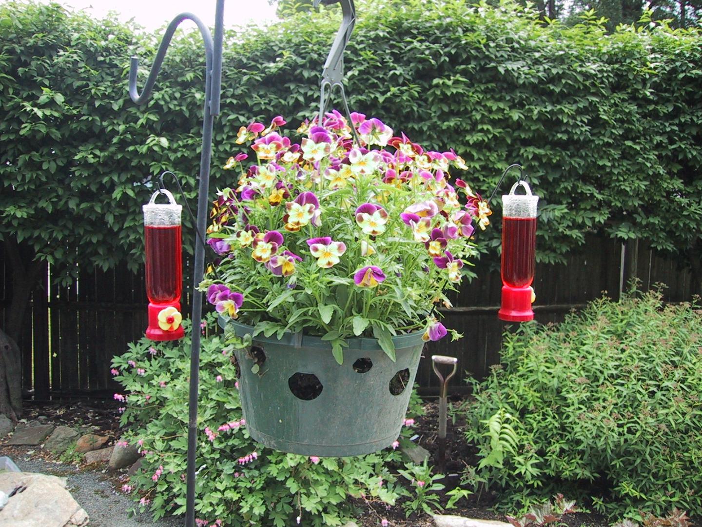 Hummingbird feeding station. Got these small nectar holders at Lowes, each hold about 4oz each. Recently seeing activity at the feeder for the female ruby throated but haven't yet seen the male.