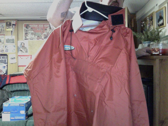 Condition is New without Tags...still has fold creases. Wendy (myn wife) (fishermom) could not adjust to a pull over fishing jacket.