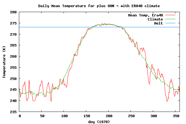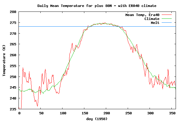 Daily mean temperatures for the Arctic area north of the 80th northern parallel