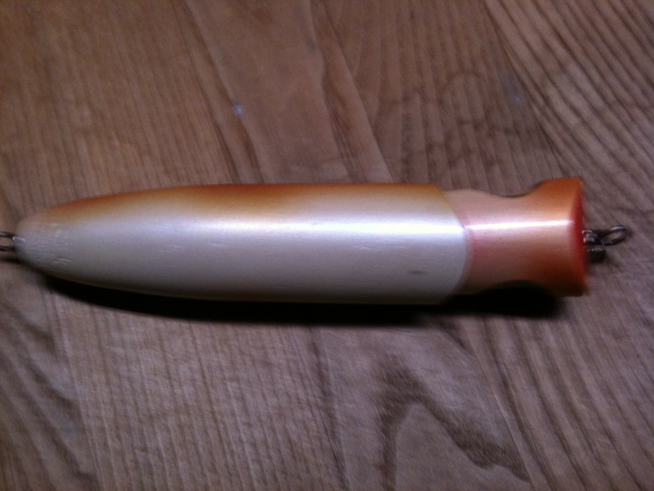 The bobtail popper will be available to a select few this season. I am still waiting for my shipment of multi-colored pipe cleaners to come in that I plan on using for thru-wiring. The elusive Bobtail can be seen in a 50 lb. Stripers lip at a watering hole near you this season!