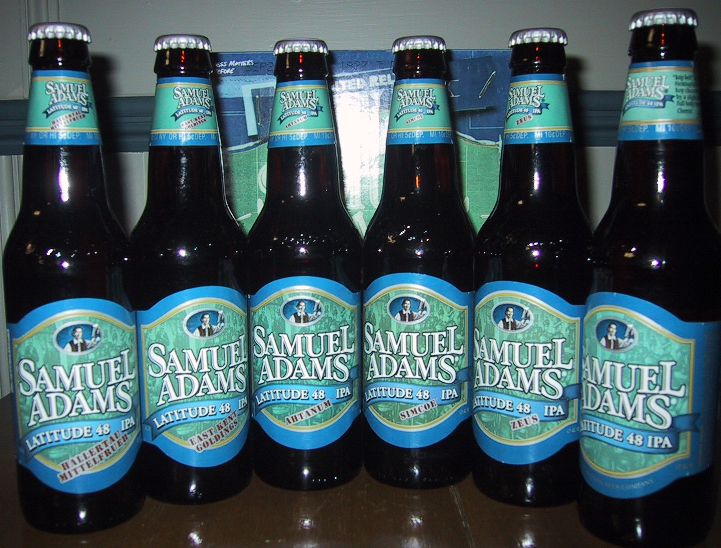 There are available 12 paks of this brew wherein each of the 5 hops are individually brewed in a batch. The 12 pak contains 2 bottles each of the 5 hop mix (standard L48) and 2 bottles of each of the individual 5 hops. I read it is an interesting hop taste testing.