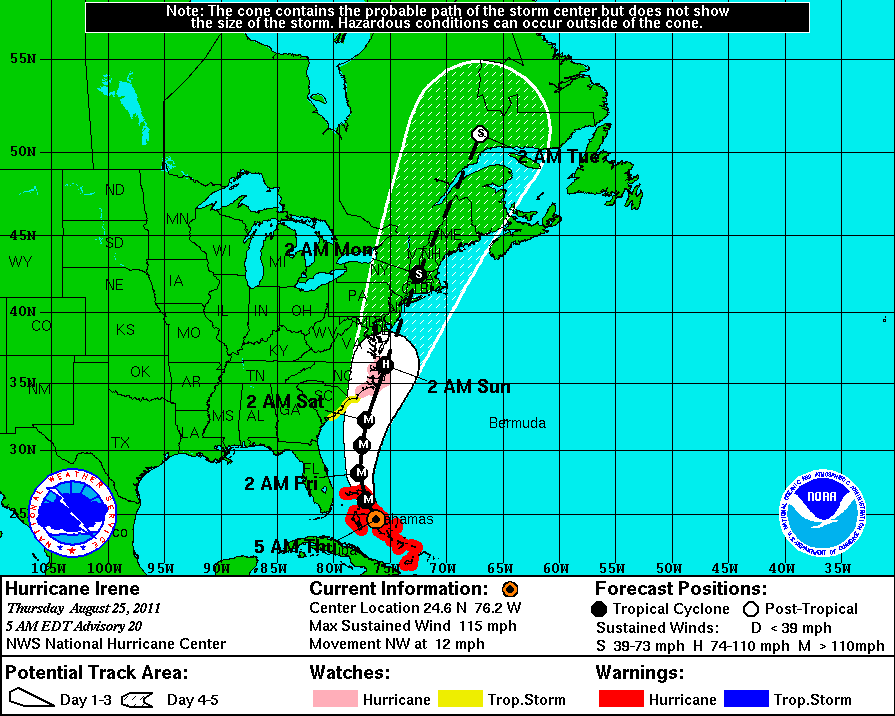The NWS track at 11 PM hasn't changed one iota. Same track as this morning. A bad one for us.