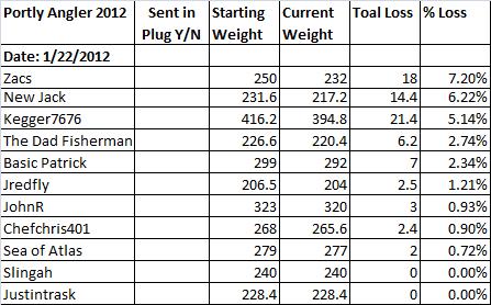 Wow! I think that is a new portly angler record for Zacs - 12 pounds in one week. That's awesome. Congratulations - keep it up.