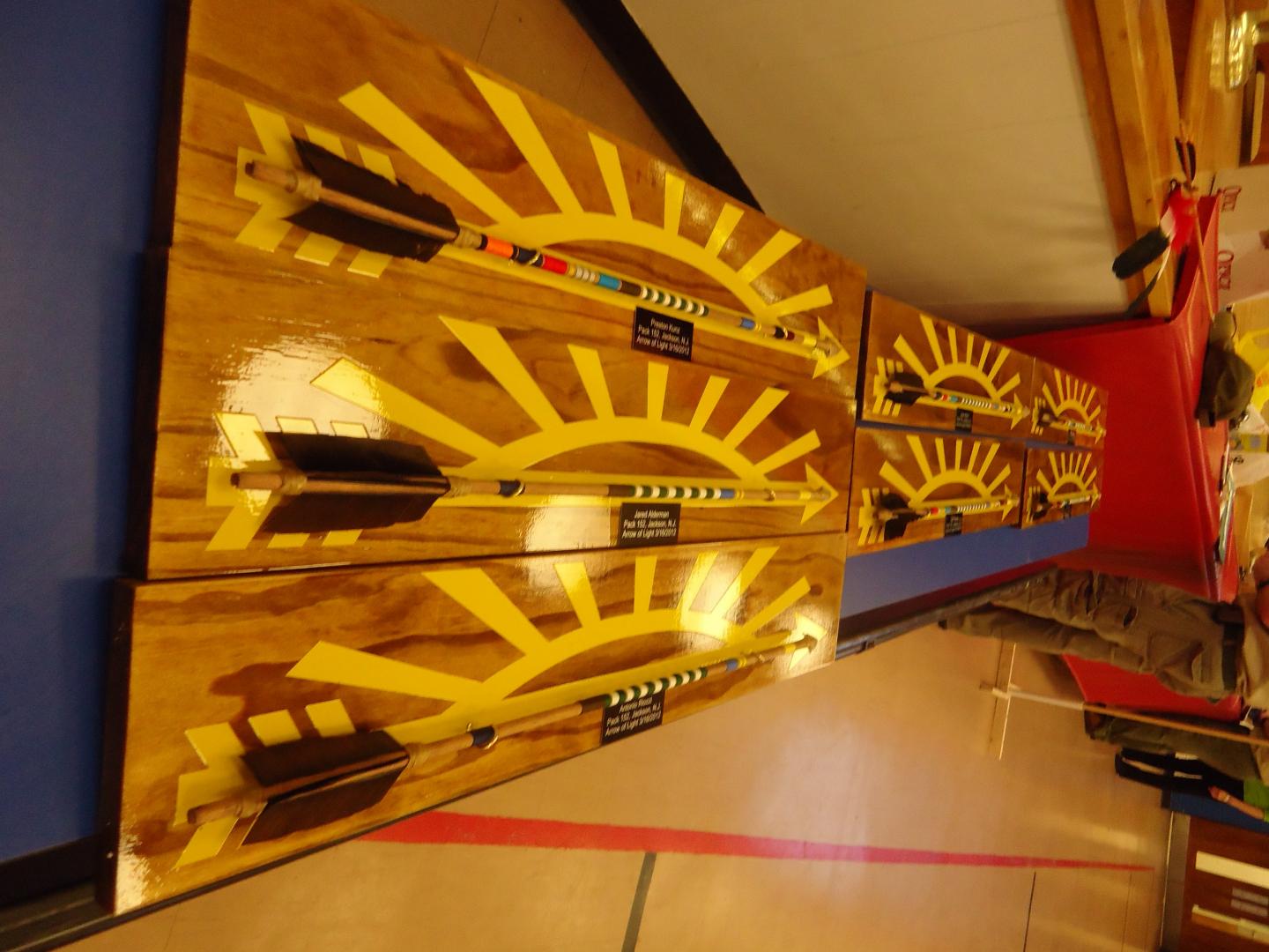 Awards I'm making for the AOL ceremony. Still need poly,hooks,and metal nameplates. Making 7 Cub Scout career arrows has been a challenge.