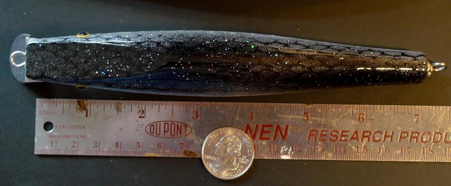 here is my take on the Pichney sand eel swimmer... 7" long 1 1/16 thick at the max diameter, Lefty 1 lip, ctr balance 11gram belly wt, lip slot @ CL or 1/16 above, no tail wt