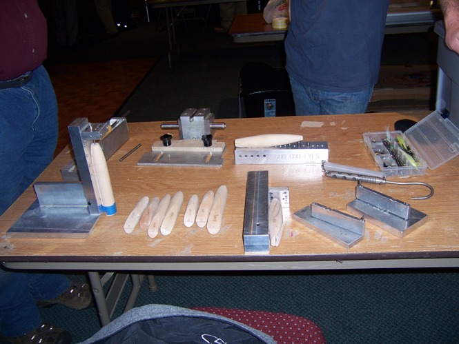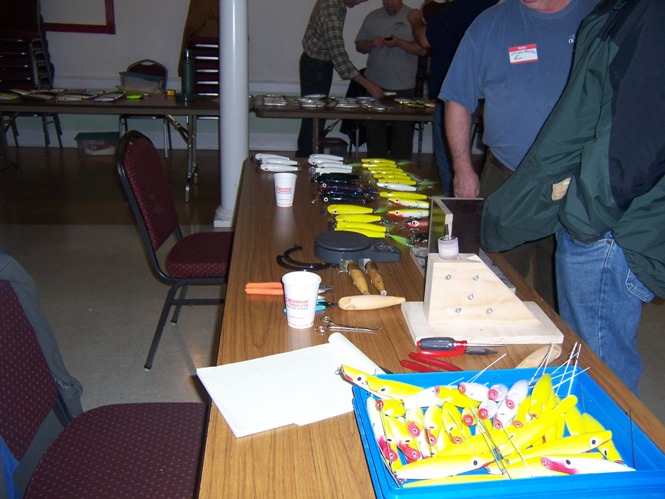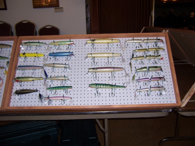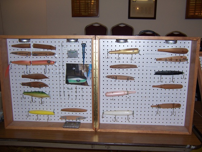 Bill that jig in the first shot was quite the contraption. His homemade display spun 13 plugs for show. Ran off one rotisserie motor, the wood part had what is best described as wagon wheel gear sets ,that thing was cool to look at. He had a different set up on the other side of the table that was pretty cool also.