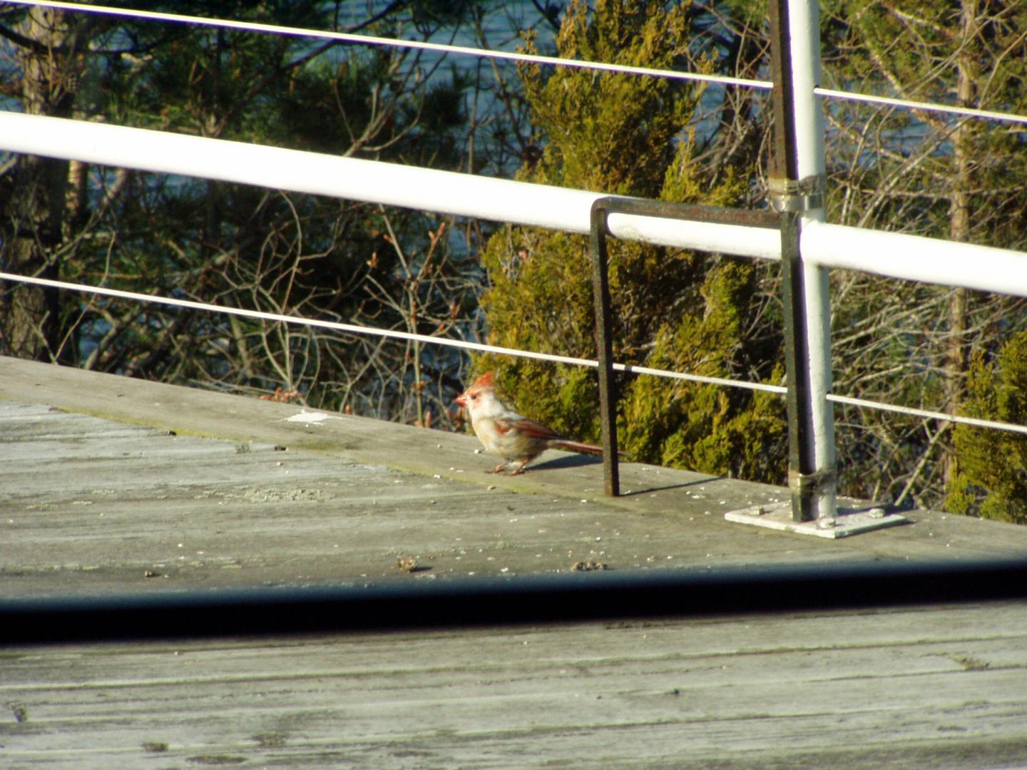 a few years back I posted a couple of pictures of a white cardinal. Well, I was at my parents place a few days ago and it seems that she is a fully functioning member of bird society - here are some shots of her daughter.
