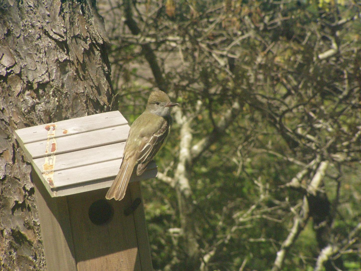 Quite a weekend for me in the bird dept. (and a few schoolies to boot). Catbirds were right on schedule and tore through every orange I put out on my seed board, but as a bonus I had a pair of flycatchers checking out the birdhouse outside my window. The female was checking the house out while the male was a few feet away. He then flew over to another house, but I think that the hole was too small - bummer.