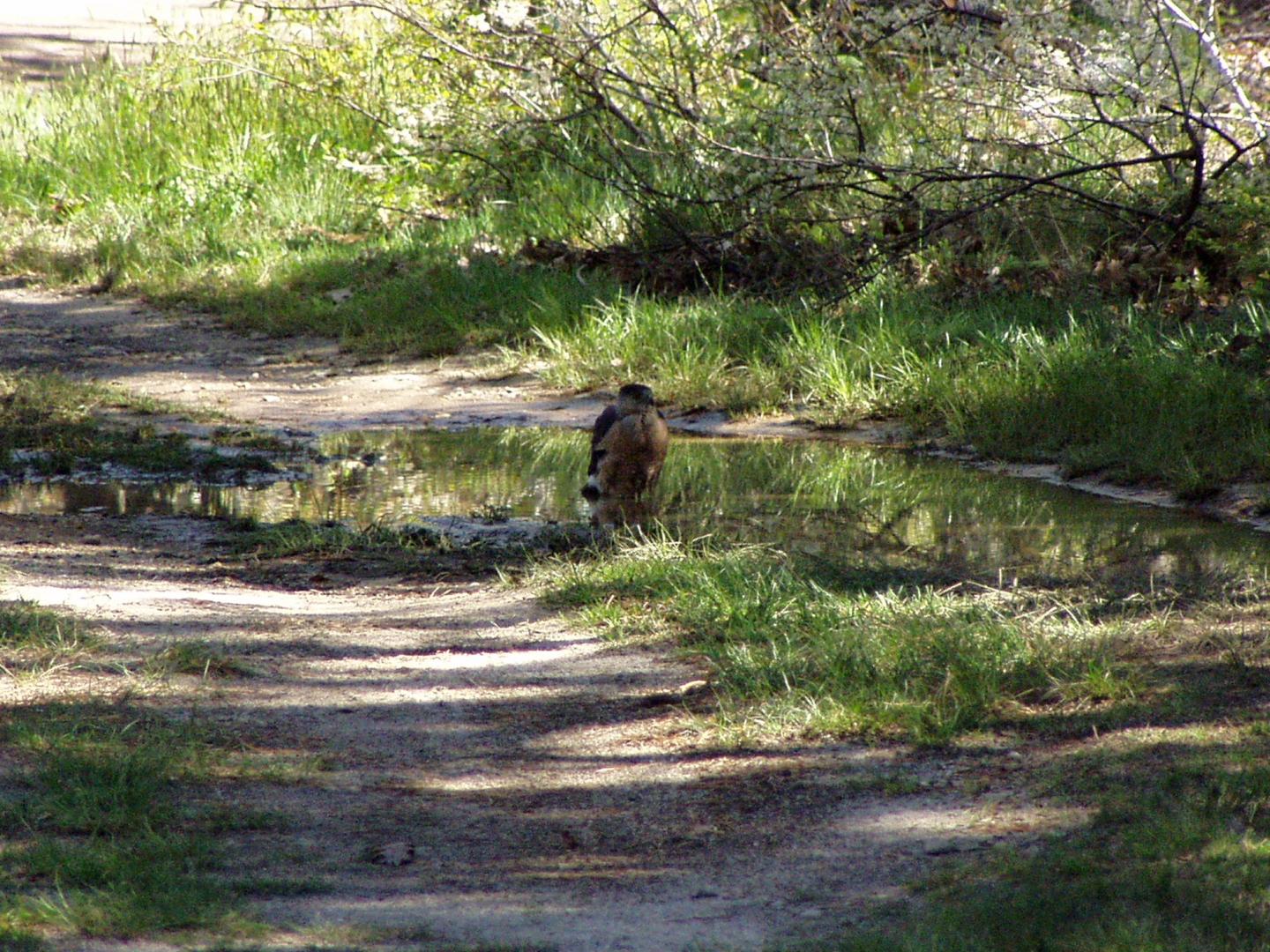 Got some pics of an unidentified hawk that came down and took a birdbath in a puddle in my driveway, he was about the same size as a crow and he had a prominent black cap. I forgot to drag the pics home with me, I'll get them up next weekend
