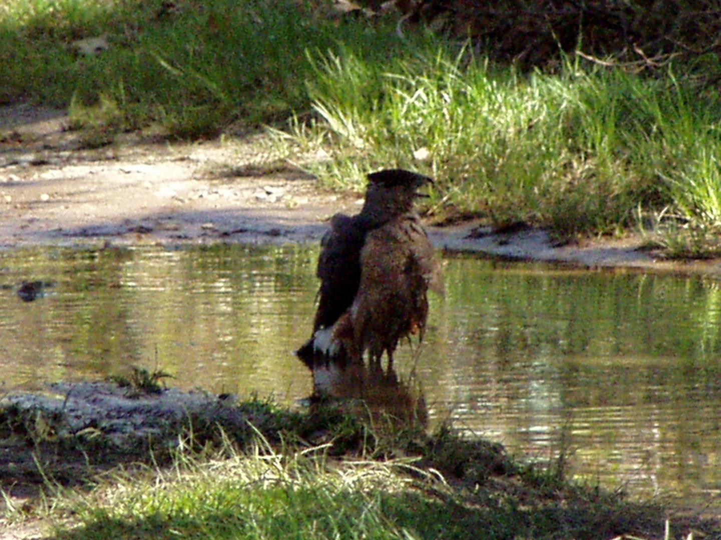 I'm pretty sure it's a cooper's hawk based on the coloration and 2na's description of it's size. It's bathing itself so its feathers are all puffed out.
