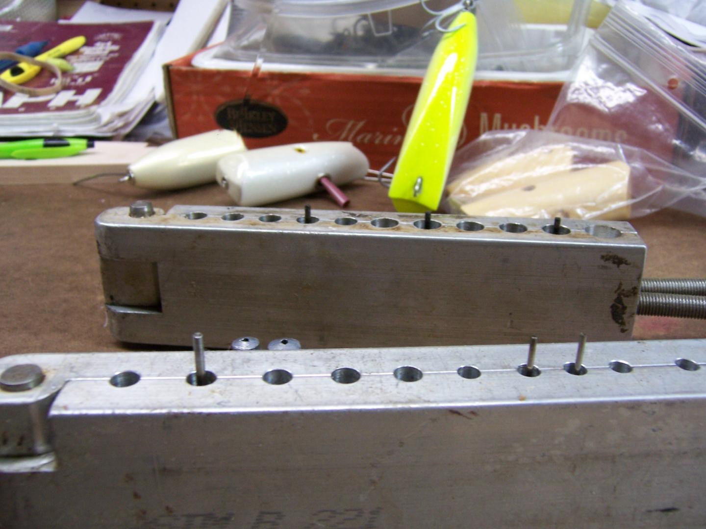 Personally, I don't think its a PIA because that's the way I've always done it. I should really start making some molds. I really don't have problems with getting WD40 on the plug. I spray it away from the plug and then insert the bit. Very rarely do I have issues with lead traveling into the thru wire hole. I'm just thinking of a way to be more efficient when making lures.