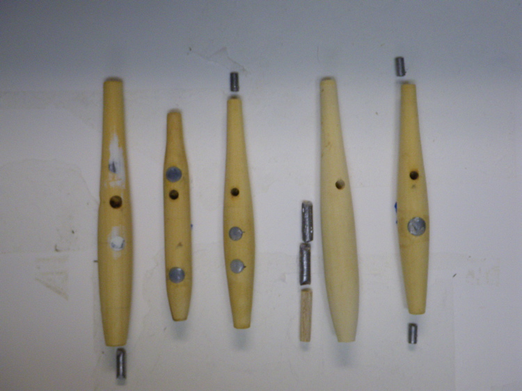 Bob, if you look at George's pics of his and Tagger's, I think you will see more weight forward than you are leaning towards. When I went heavily tail weighted, they floated almost vertically, which did not work for my needle needs, as it is a sloooowwwww retrieve.
