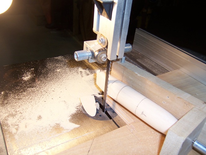 How do you do it? I saw Rockfish's jig at Plugfest, and I still didn't "get it".... I have a couple bodies turned with square ends still on. Need a visual of your jigs or process. I have a few good darters I am using as templates, but am stuck at this particular stage and want to keep my fingers away from the bandsaw blade. Thanks for your input and pics.