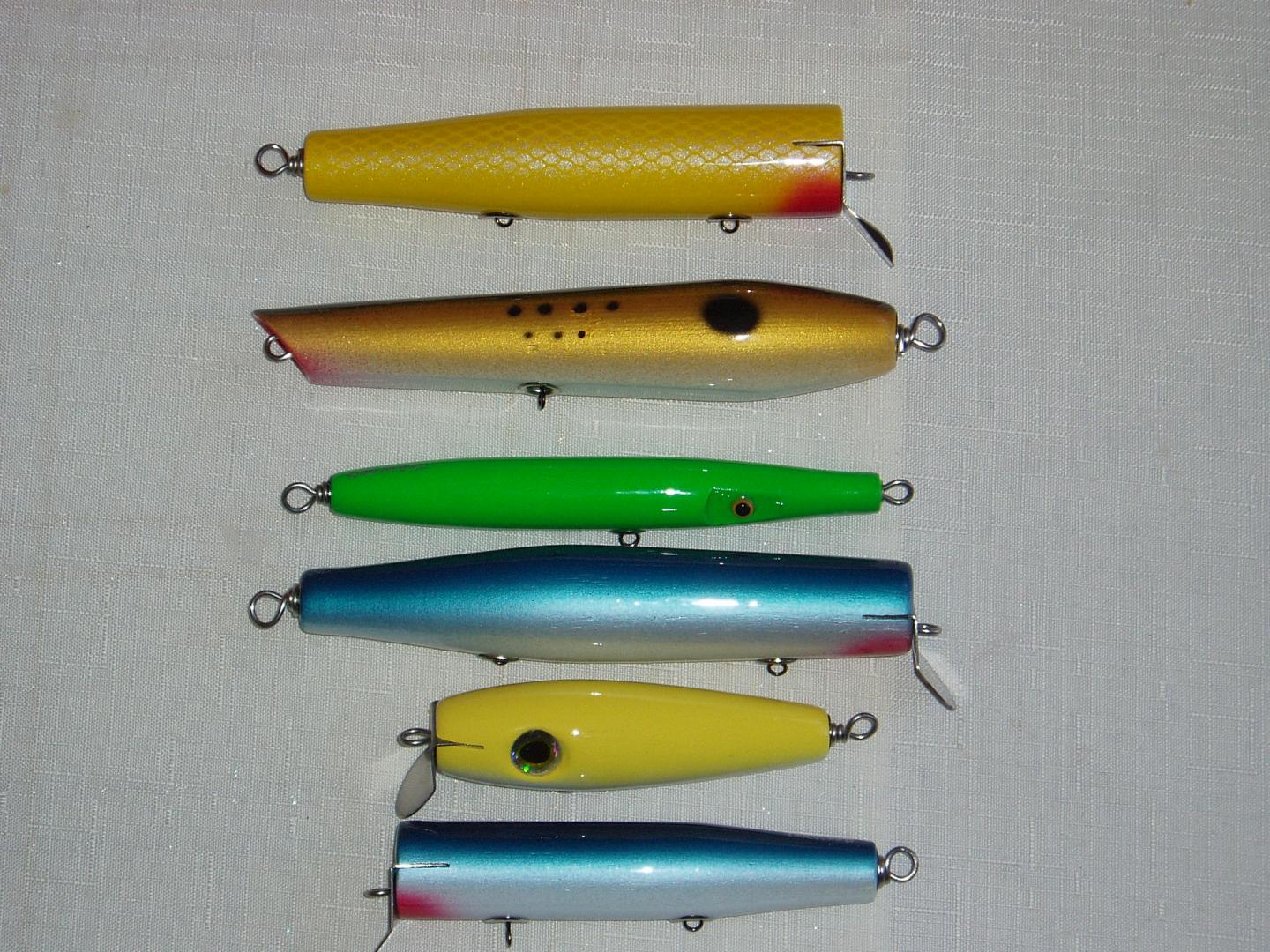Here's what I was been working on while you guy's were having a good time at Plugfest. Nike's, Cap'n Bill's poppers, Goo Goo's, and a new one I am trying a Snookie. Also got some BM Danny's and some Conrads turned and sealed, and I am finishing my Plugfest contest Plug  ..Hope to have it done by the weekend so I can post on Sun. morn.