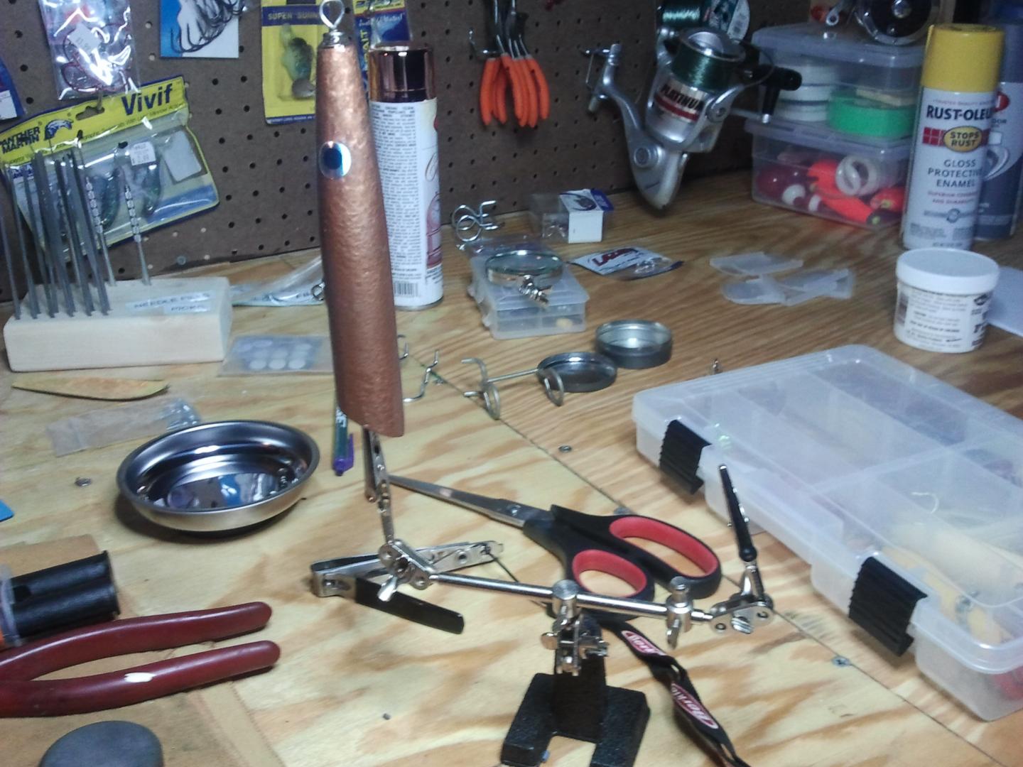 i havent taken any pics recently, I turned and sealed alot of stuff... i need to stop ice fishing long enough to finish it.. I;ve got med Surfsters... giant jointed pikies... small striper pikies, goo goo eyes..med striper pikies ... and an assortment of I'm not sure what hanging for paint... i'll have it all at plugfest.. if i get to painting soon..