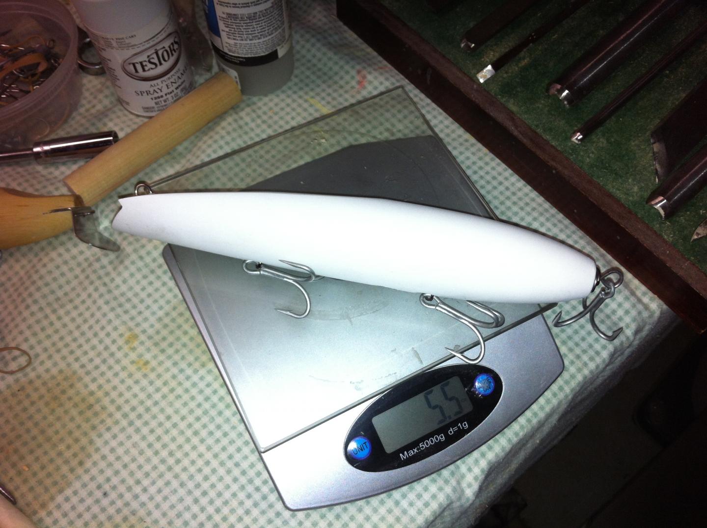 I also cut a bunch of flaptail and swimmer blanks along with my large Musky spooks (a pic of a finished one for reference). The flaptalis and swimmer blanks are 6 inches and between 2.5 (flaptails) and 3 oz (swimmers). The Musky spooks are 8.5 inches and about 4.5 oz, I really love the action of these guys and really hope to slay some waterwolfs with them this season.