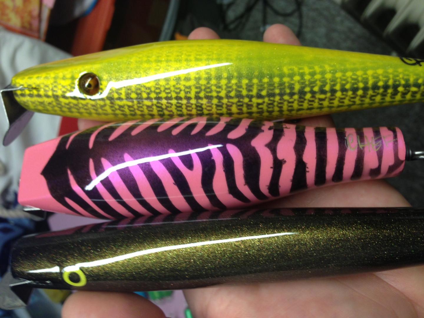 And 1 pic of some of the collaboration work I have been doing with GooGoo Man. My mack paint on some of his fantastic slim pikies and super jr's. I also did some redfin style swimmers and nikes for him which I can't wait to see epoxy on.