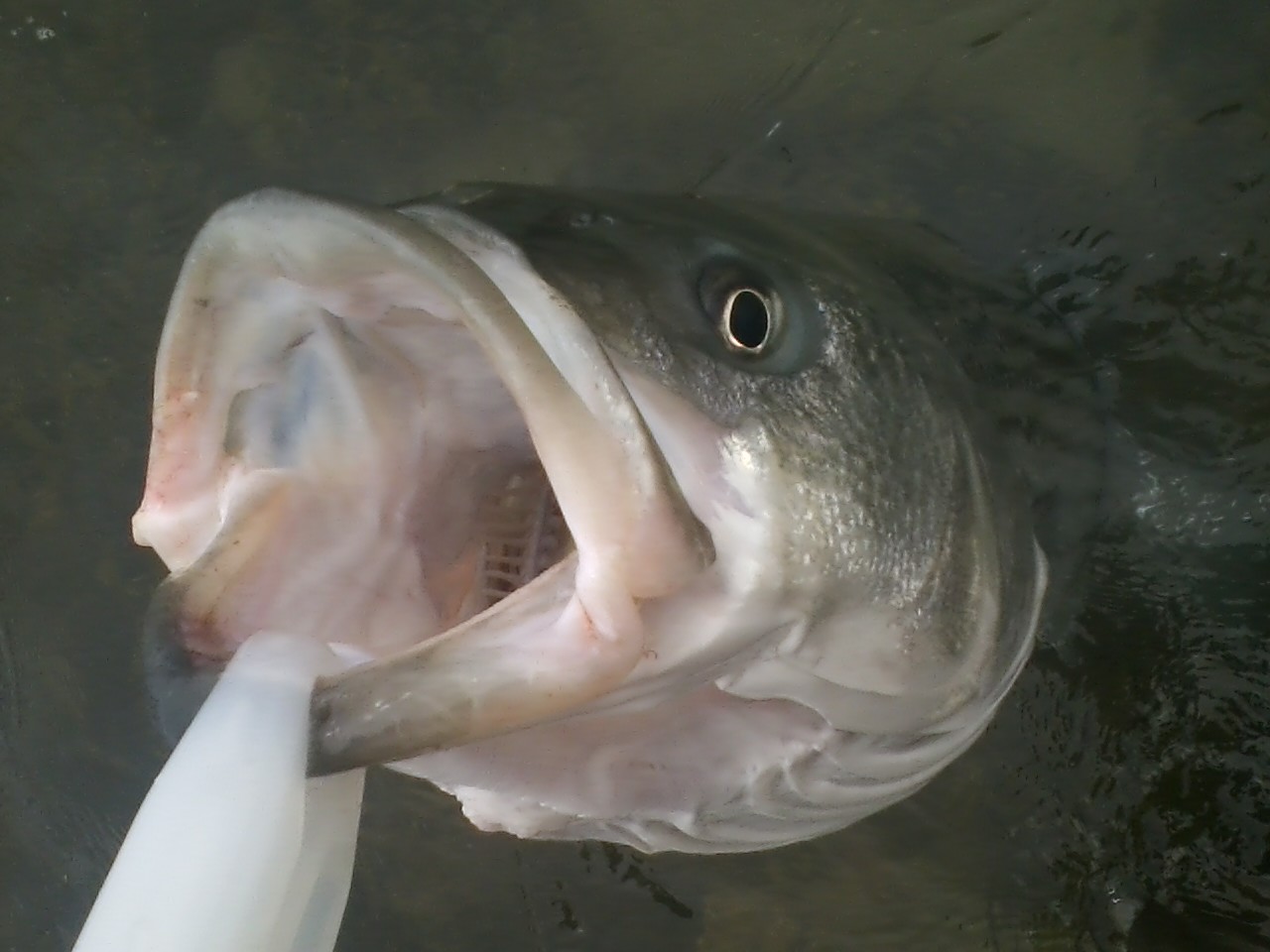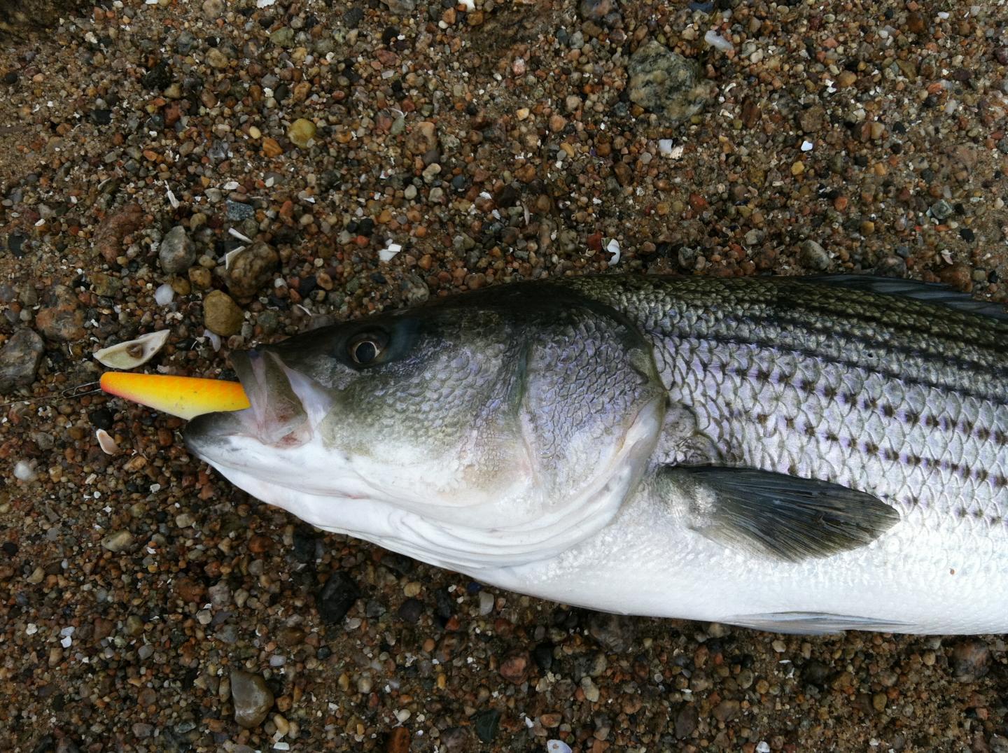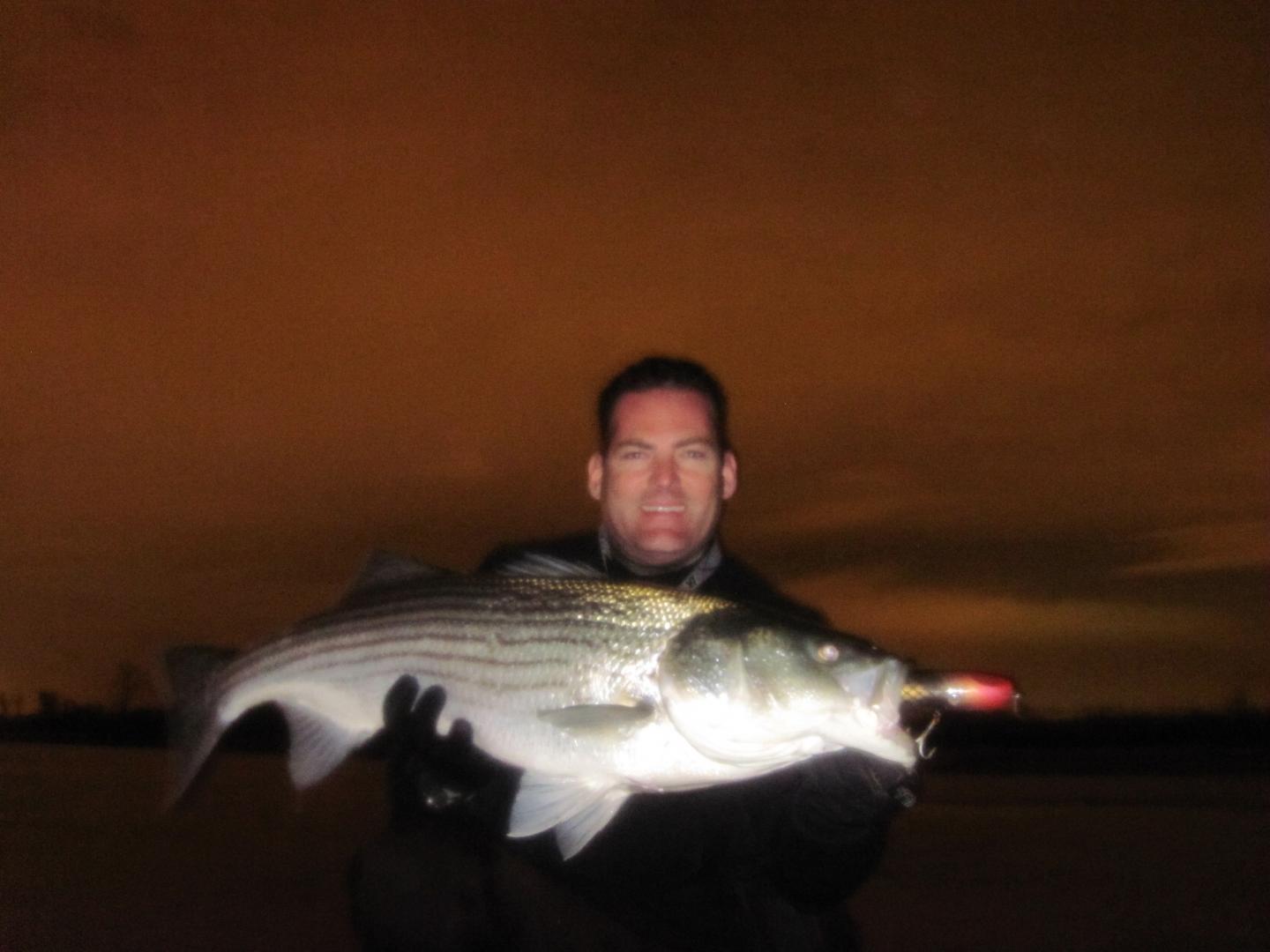 No picture but a 30+in. on a "Numbskull" 5" darter. White. First cast, nevertheless.