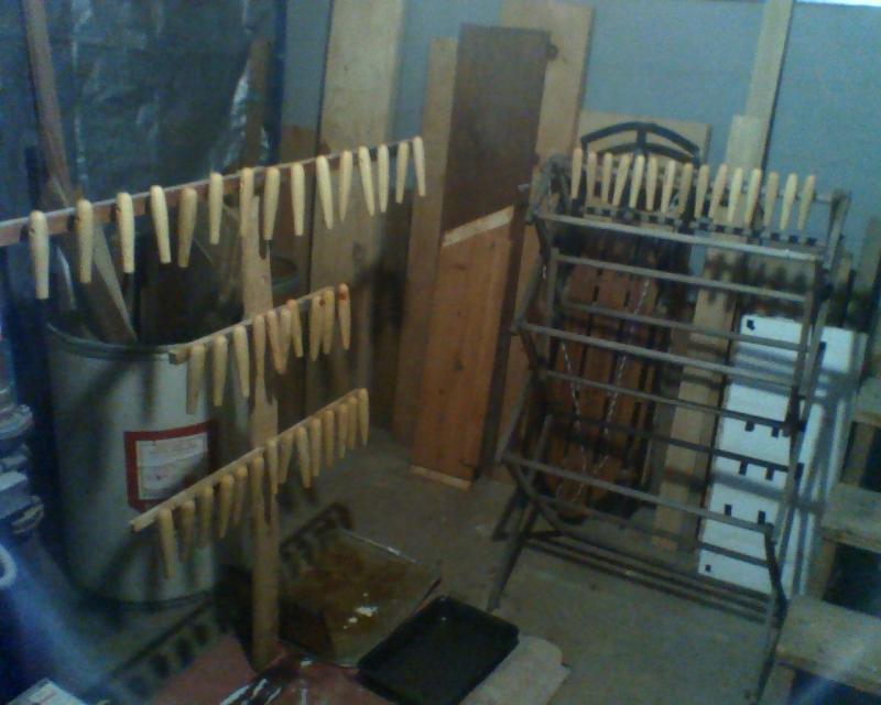 Good morning. I see we're all having fun. Been busy sealing the remainder of the plug battallion. I started to dip primer; zinseer gold label , cut 2-1. so far so good. 2 coats. No smell , overspray and spray gun cleaning. Does anybody dip primer? Here's my low buck dripping system.
