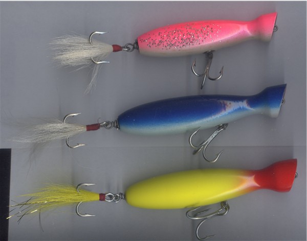The top is a small polaris, below it was the plug i copied, the one that weighs just under 2 3/8 oz the bottom is one i made - but it could be flaps, if he promises to fish it and not let it sit on the rack......unless it gets to stay close to gibbs #1