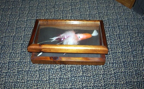 Display cases I use to build them for DIFFERENT FLYS when going to shows, heres one out of PINE, stained WALNUT. it's 8x13 bottom is 2" deep, top is 1.1/2 deep, just routed on the top, glued in dottom, w/ Black felt backing.brass hinges.