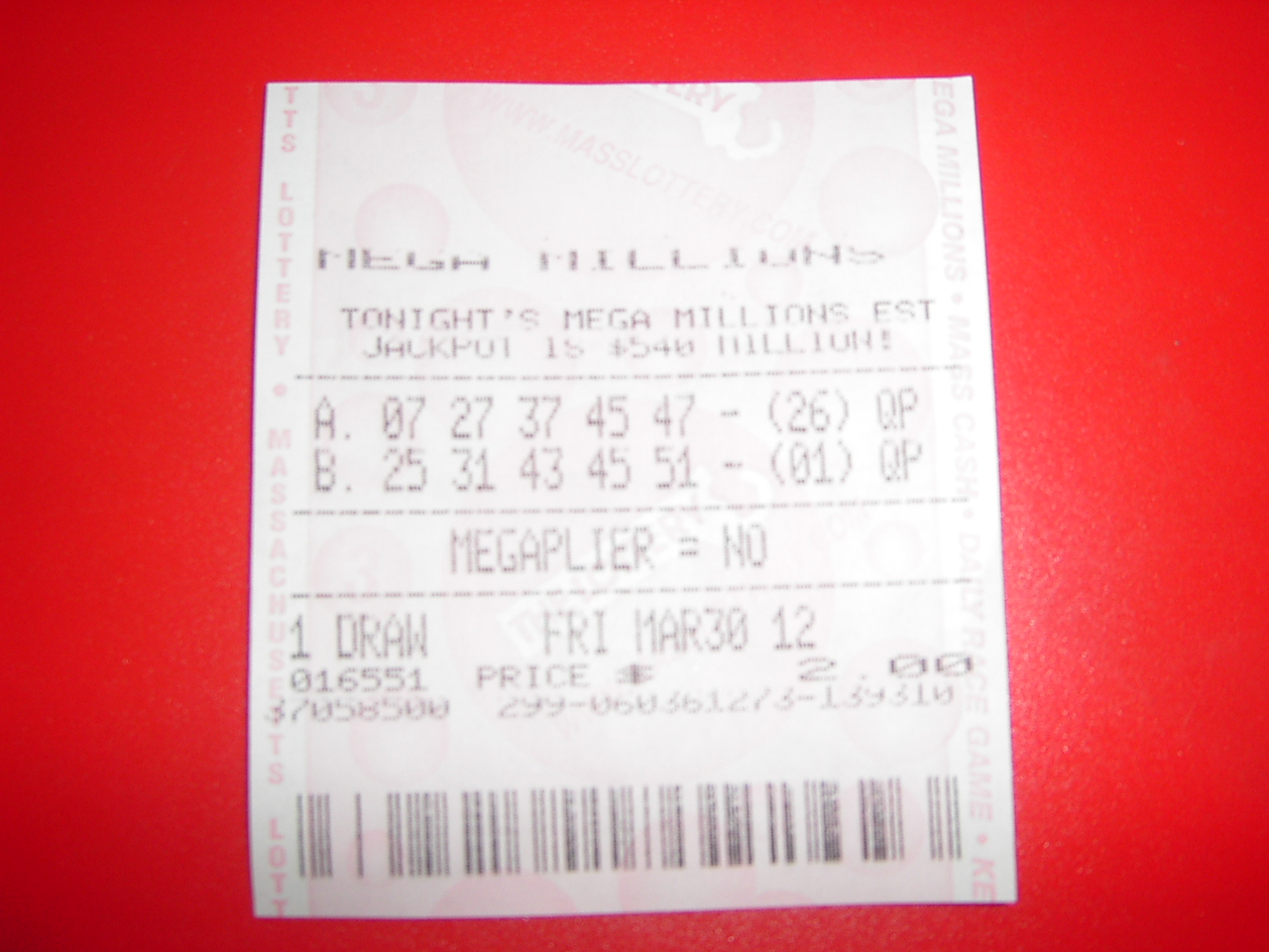 Picked up a ticket for cohenfishin. His numbers are.