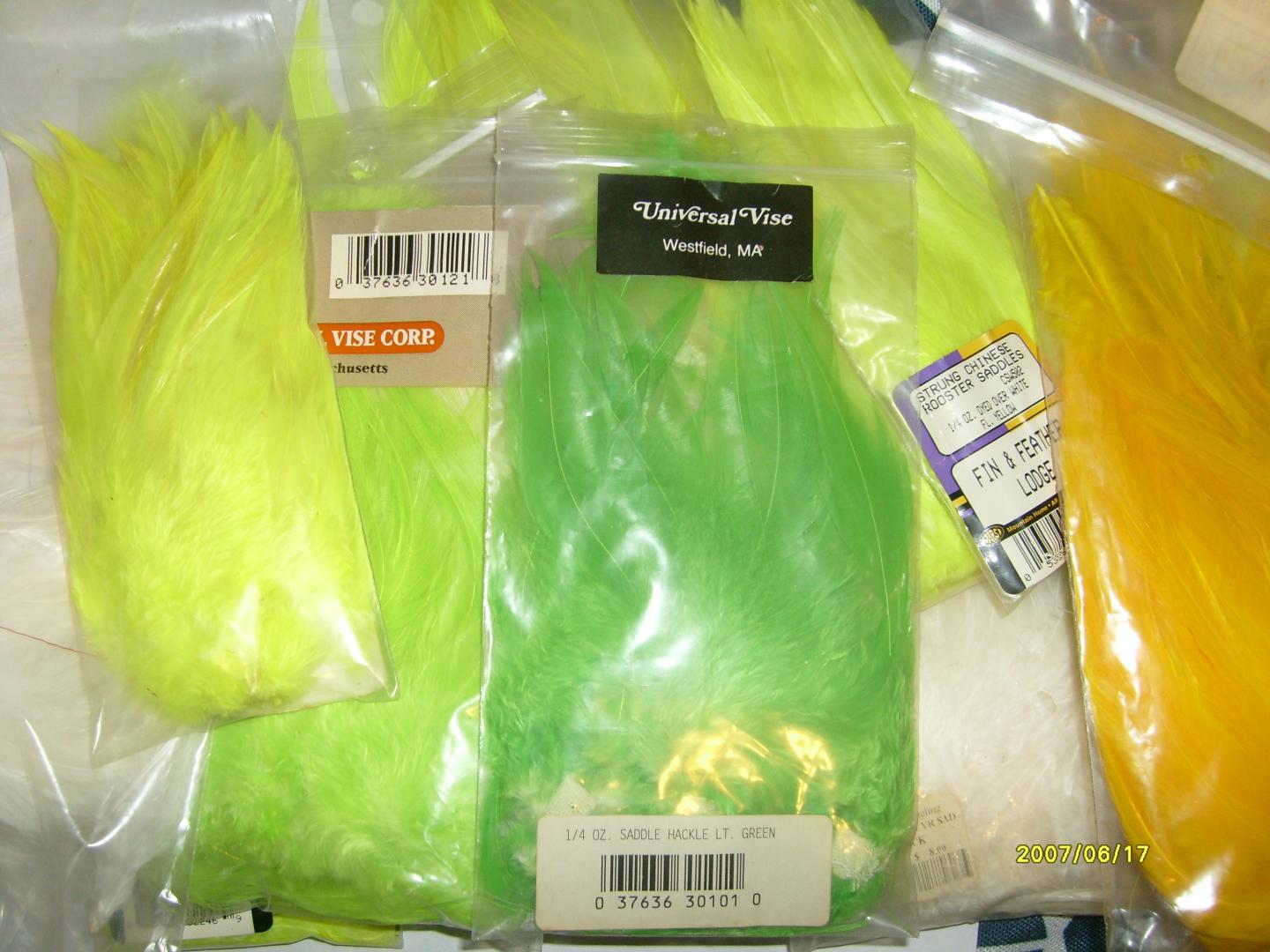 I will take the bucktails and one each of a yellow and green hackle, for an even $20.