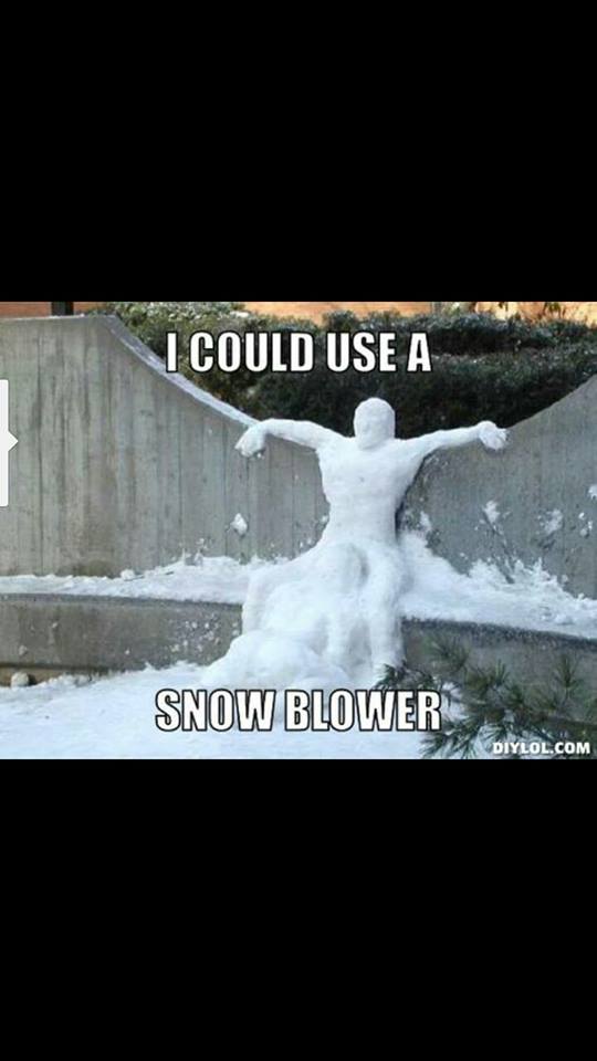 Well, I did basically all the neighbors today and right as I was finishing a path between there steps and driveway my Ariens found their globe. I did not even finish mine, I did one path out from my shed and started down the street. Awesome. After reading some online and being a little scared about built up energy referenced here and there, I went out and got it out. I was thinking it would be a real PIA, but was not too bad. I guess my good deeds were seen from above and he gave me a break. After messing with it for maybe 20 or 30 minutes I was back in business. No place to put it though, its pretty ridiculous.