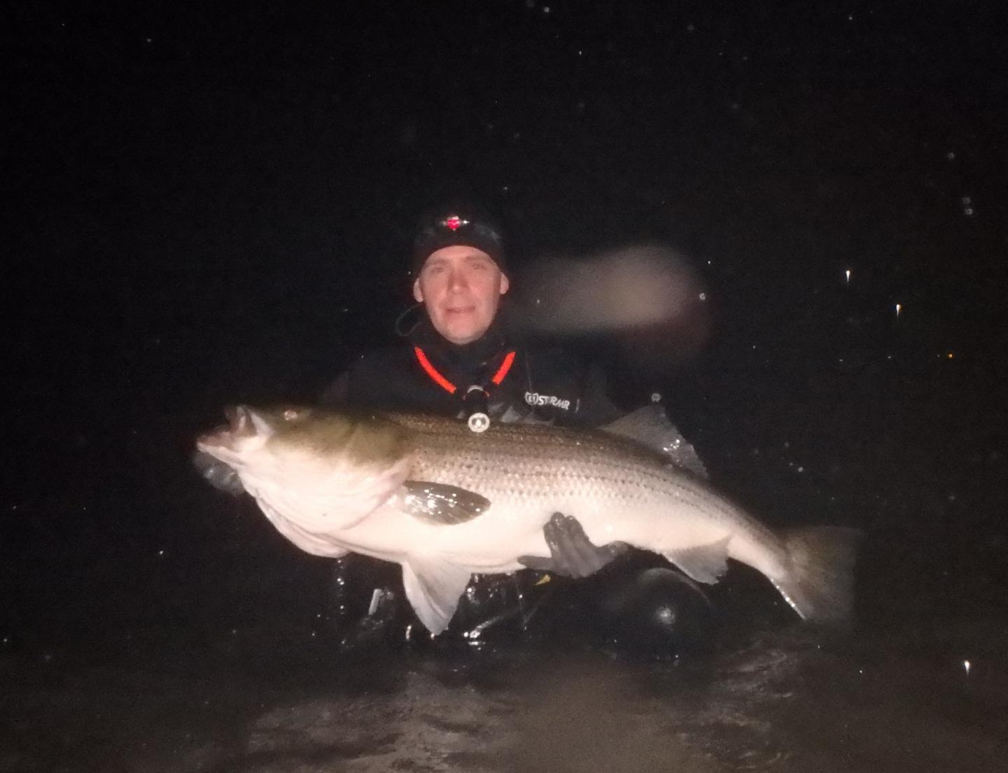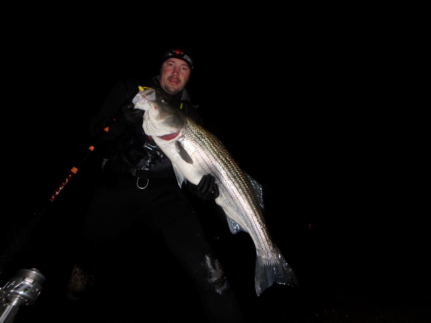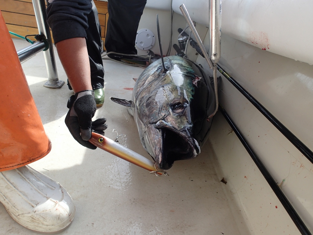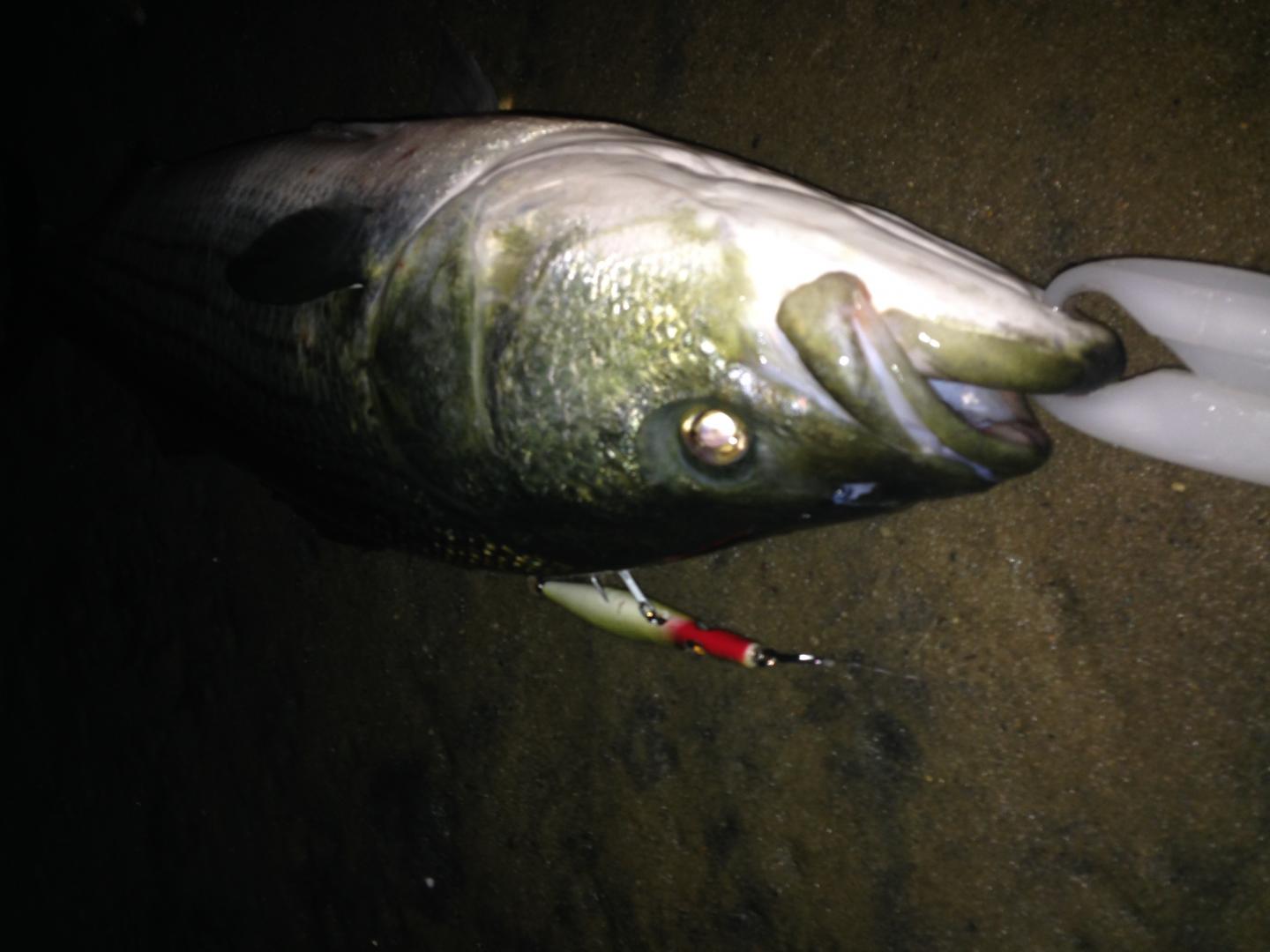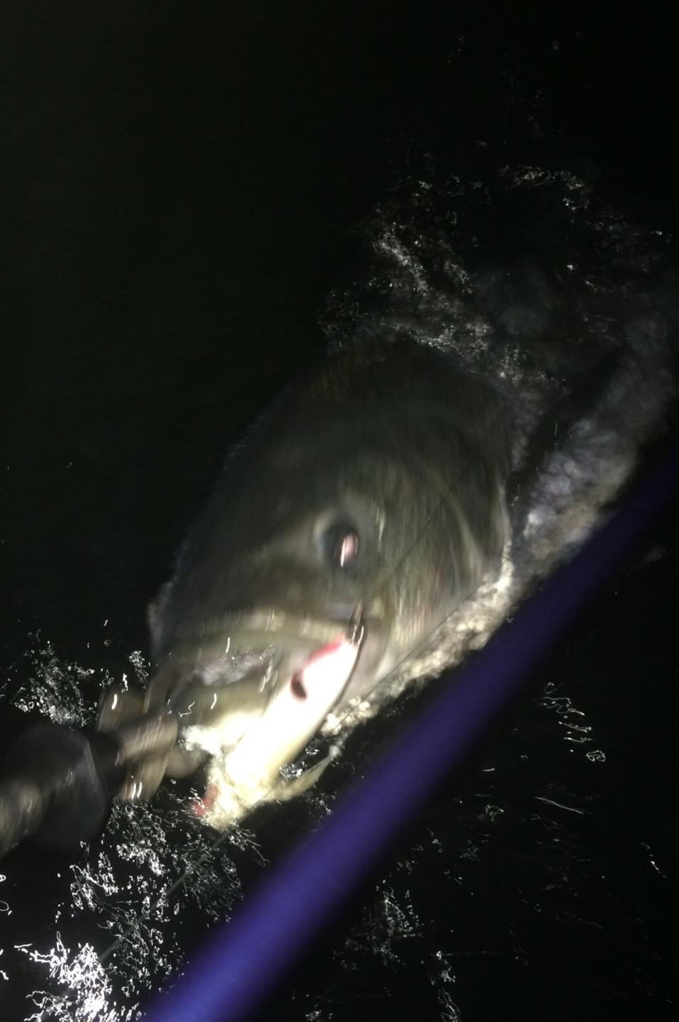 A hair less than half the weight of Jay's fish big one at just 25 pounds, but landed on the first cast ever with one of his maple Musso copies. That plug is now either blessed or jinxed.