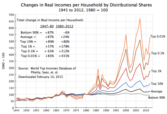 I have said this and seems no one has the answer at the current tax rates we dont get anything now .. do you really think GDP is going to be 9% a year ?? GDP has grown since the 80's That is, the US has a distribution problem. Wages have lost relative to profits (and profits largely accrue to the rich and wealthy), and the wages of lower paid workers have fallen even while the wages of higher paid workers have risen. pesky facts