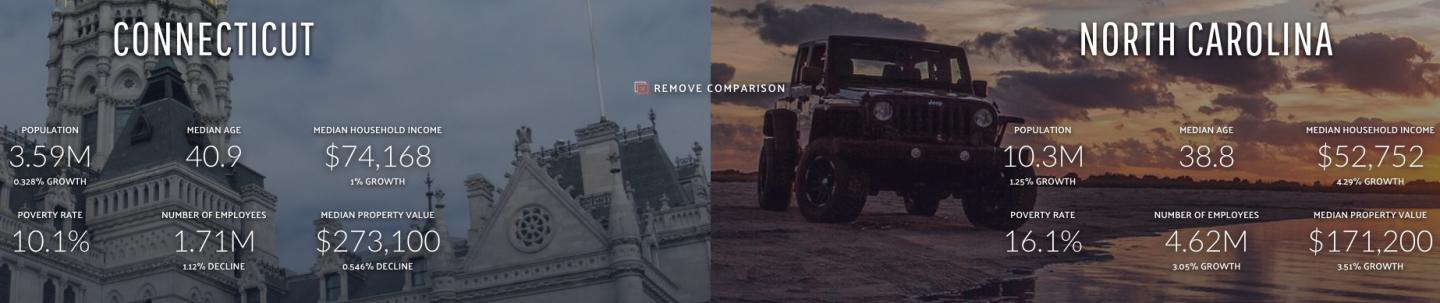 you struggle with relative facts.. 2017 to 2018 Connecticut's population has decreased from 3,573,880 to 3,572,665 or a total reduction of 1,215 people OMG NC has 6 million more people then CT i am guessing this hasn't happened over night NC also has a popular coast go to hilton head and see all the 900k houses