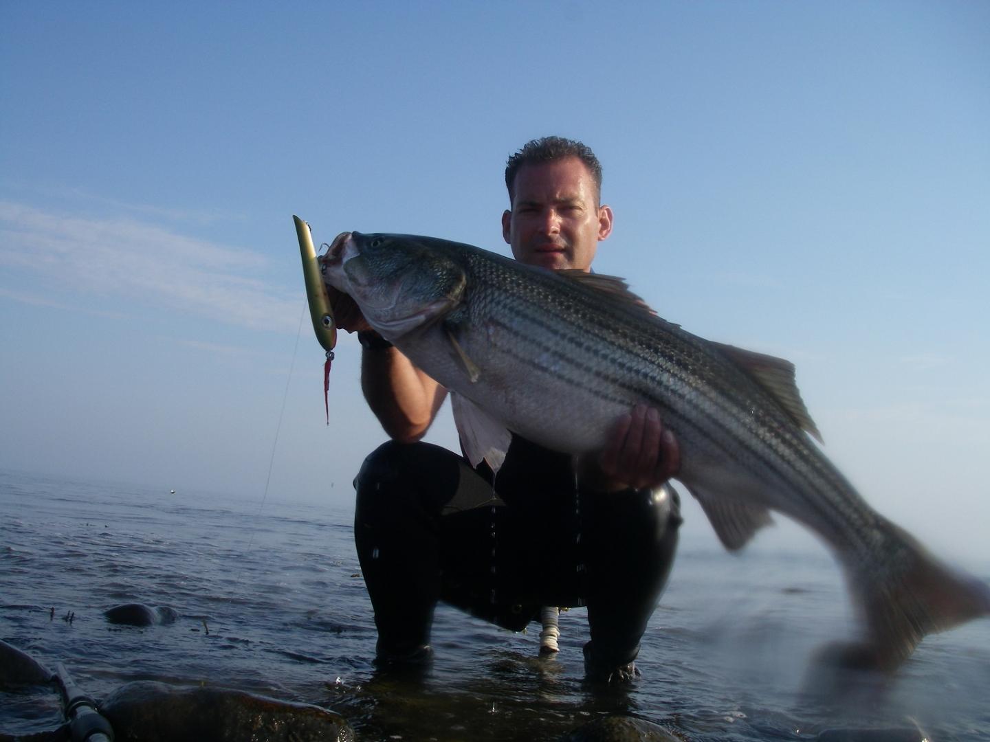 It's been slow and I haven't been out much, but here is a 30" Bluefish from the NH rocks on a surf howdy by Lower. (best fight of the year)