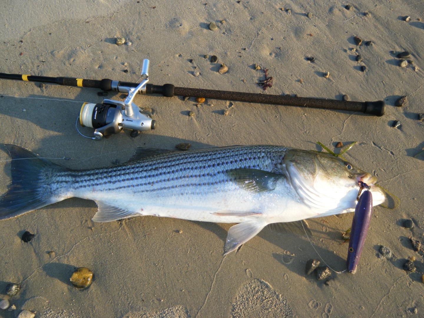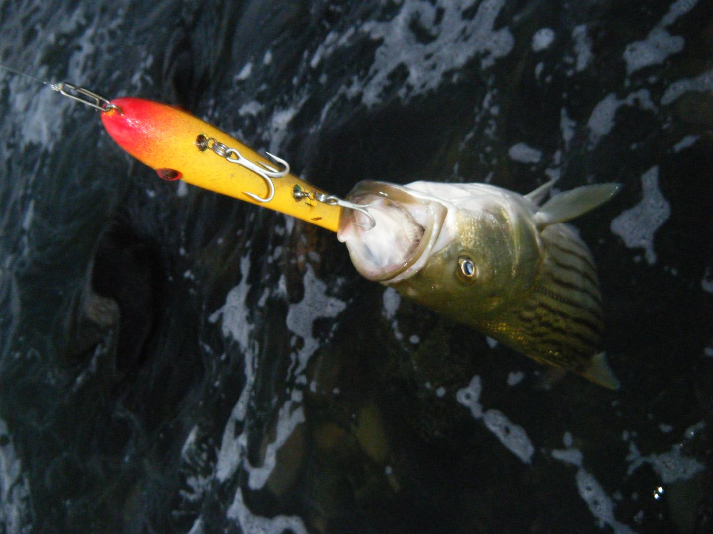 One from MV on his Lido Flaptail (lure almost as big as the fish). One on his classic black darter. The last was on his Purple Pencil popper. Fish absolutely devoured it. All released healthy.