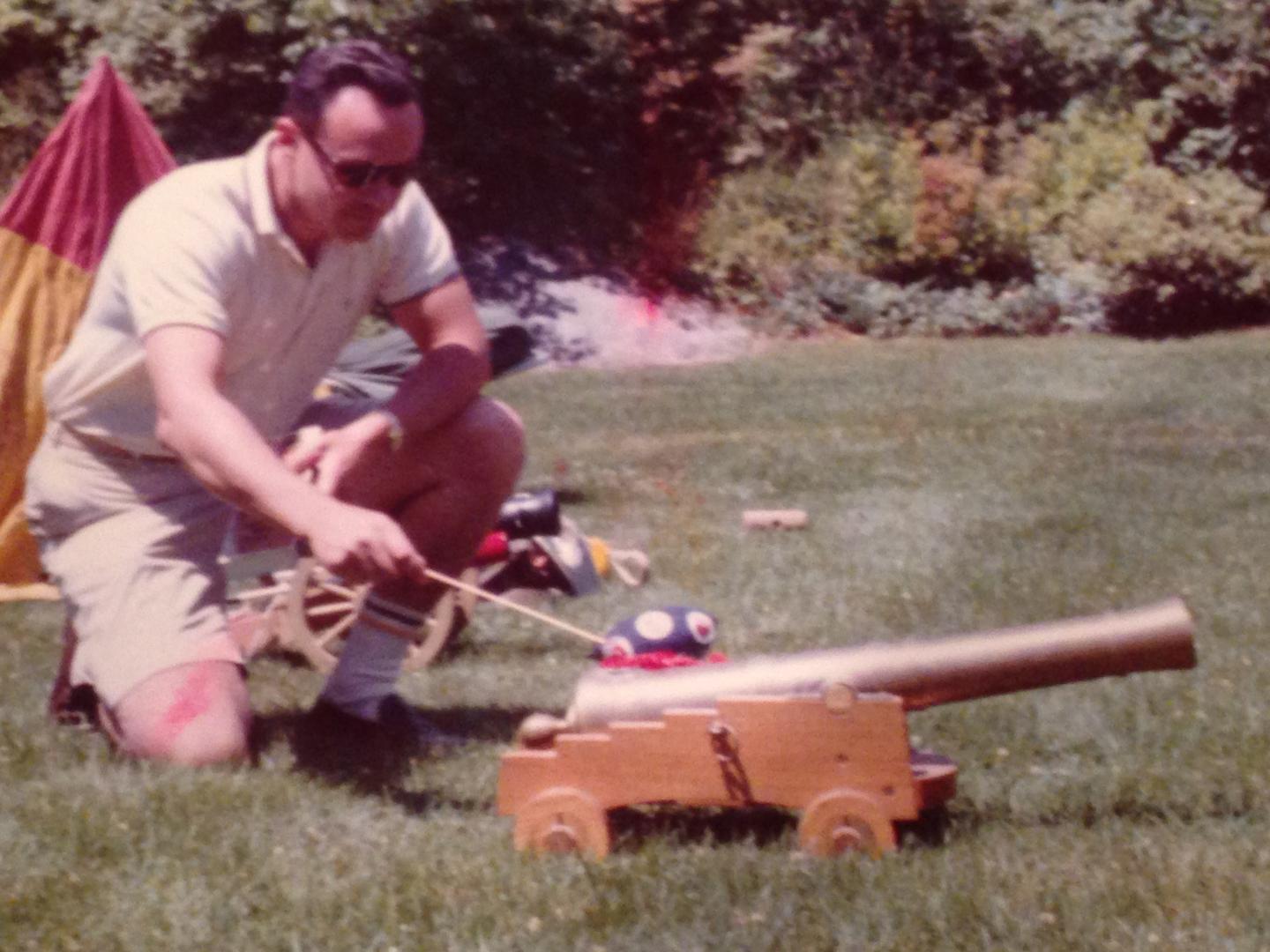 These were fourth of July Shoots we would go to back in the 60's. Black powder. Sometimes get 20-25 of these together and fire at the same time. Crazy. My father had a cast one, then he had to get a brass turned. An engineer friend in town would produce a couple more every year. My sister hated it. Food, beer, kids and cannons! What could be better for these WW2 guys and gals? Good memories.