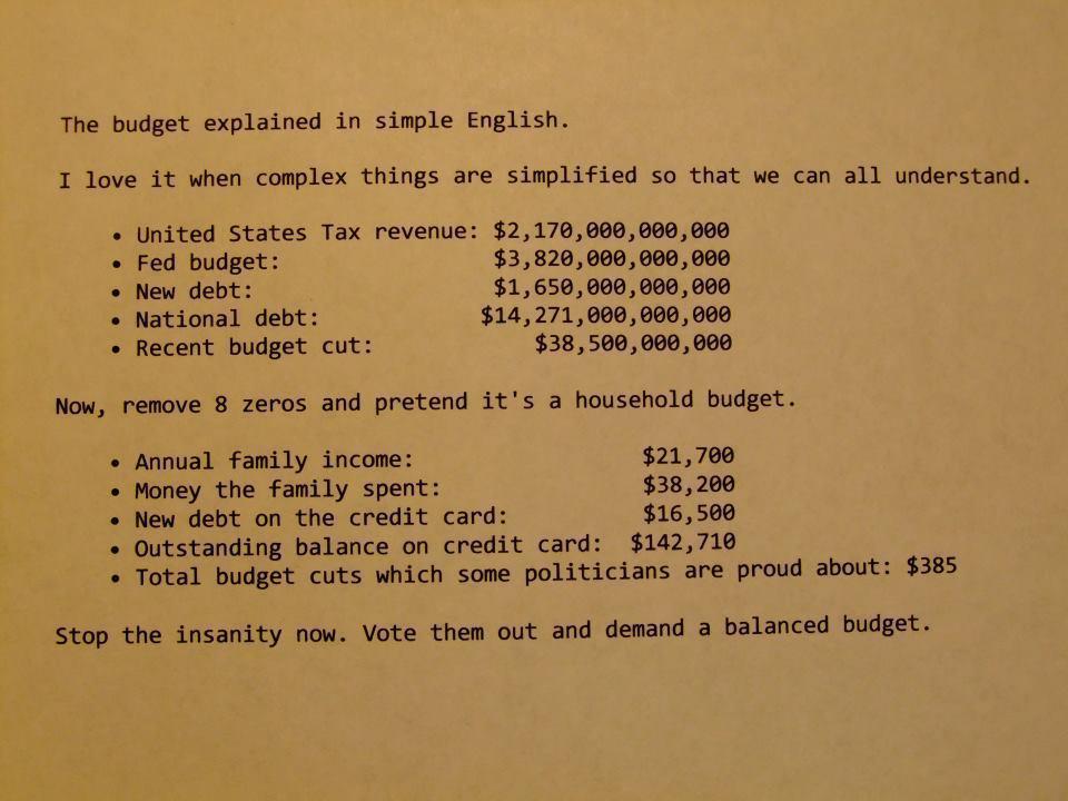 All this hype about the economy and nothing on the budget and deficit, guess who pays that tab; prepare your children.