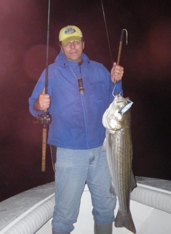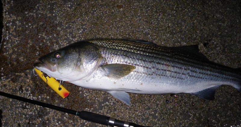 got this baby on a nice rock in montauk, my first striper on my own wood! yellow/red pencil. very gratifying. this is what you get when you go to an event like plugfest and you get an idea. i just got into turning, but i love it! thanks guys!