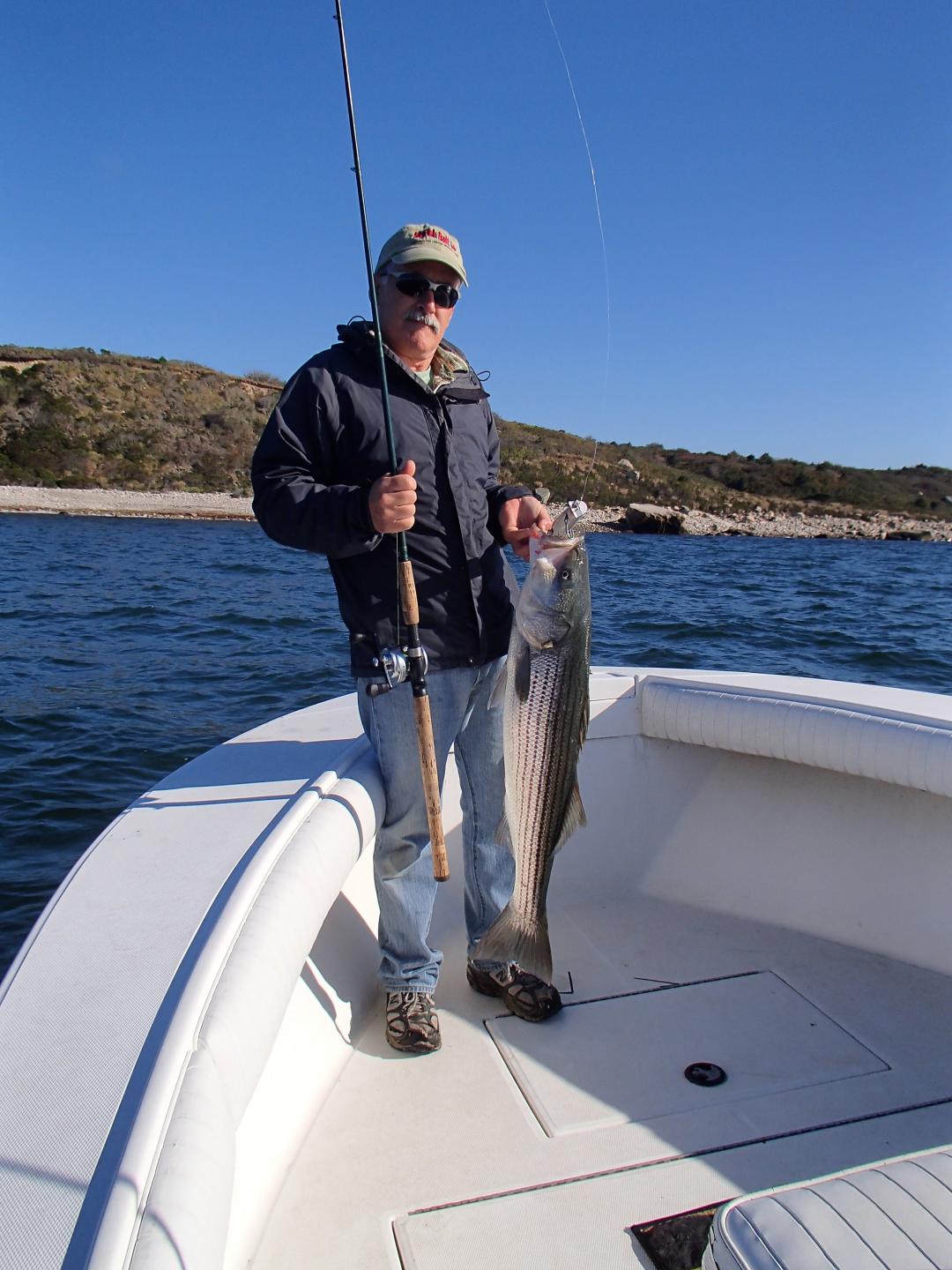 This is a disappointing photo of an impressive bluefish. It is rotated and swinging away from the camera. It was an honest #15 on a Boga. CRUSHED Ted's (The Greek) large flaptail in tight in a boulder field and got foul hooked in nearly 3 kts of current then took me on a slalom run through Woods Hole. Five hours later and I'm still tingling.