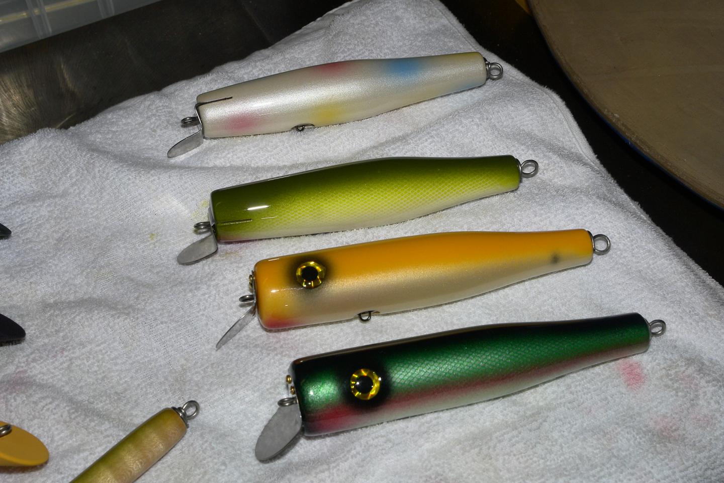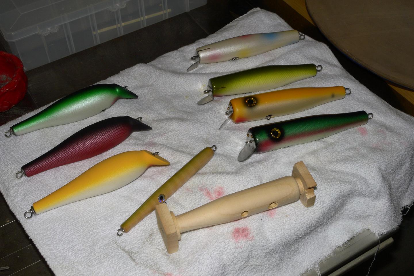 Morning all. haven't been doing plug turnings yet. As some might know I've been busy starting a hobby/business turning wooden baseball bats. my son & I been making turning models out of original models. Coming along nicely but there is so much to learn about wood, grain and the dreaded variables. I have request for stubbys. I have the dupe ready to go for a run. If time allows I will hand spin a large pikie sub swimmer. Once I get a shape that I like i will make up a template. SGT. STRIPER, nice looking paint on those plugs. GOOGOOs like sweeeet!!