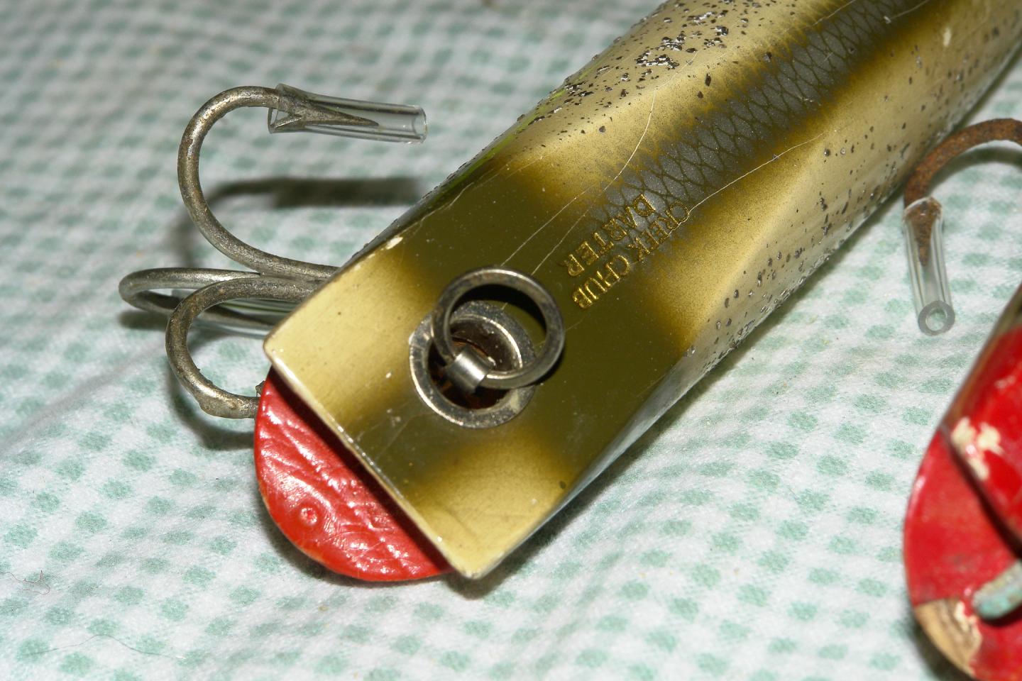 Take a look at Creek Chubs fix for the original Surf Darter which was a turd in the pic's below. They just pulled the wire back into plug, drilled down from the top and added grommet and hook hanger for a line tie!
