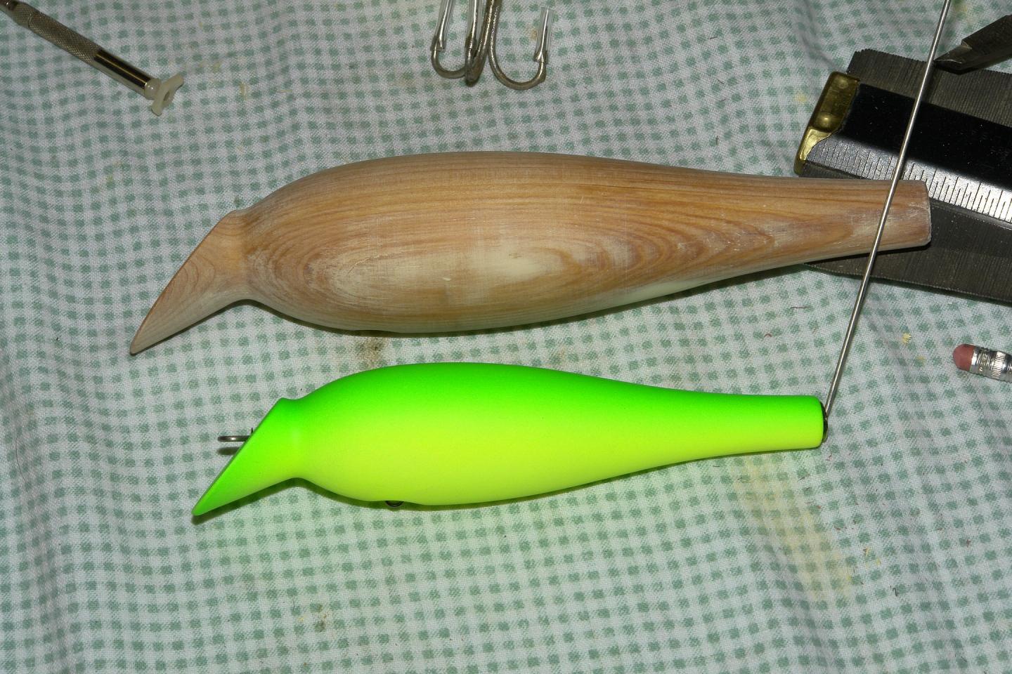 And, Gary brought me 2 Surf Darters for reference. I will get all the measurements and post them up so we can start the build challenge! He also had his proto of a Pike Darter which is based on this plug, interesting
